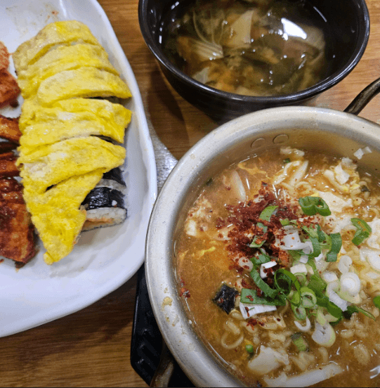 생존맵 유저 서면에서 술 마시고 막차로 들르는 필수 코스 (팔미분식 내돈내산) 서면에서 늦게까지 놀거나 술 마시다 보면 묘하게 출출해질 때가 있죠. 국밥은 좀 헤비하고 편의점은 가기 싫을 때, 제가 무조건 향하는 곳이 바로 팔미분식입니다. 24시간 영업이라 새벽에 가도 불이 켜져 있다는 게 최고의 장점이에요. 고민할 필요 없는 고정 메뉴 여기 가면 메뉴판 볼 것도 없이 무조건 '김치말이김밥+시락국' 세트를 시킵니다. 이름은 분식집인데 사실상 이 세트 하나로 서면 바닥에서 오랜 세월 버틴 곳이거든요. 평범한데 계속 들어가는 마성의 맛 김치말이가 우리가 아는 그 차가운 국수 메뉴가 아닙니다. 쫑쫑 썬 김치가 들어간 김밥 위에 얇고 고소한 계란 지단이 덮여서 나옵니다. 그리고 접시 한쪽에 오징어무침이랑 어묵볶음, 달달한 무가 같이 나오는데, 이 반찬들을 김밥 위에 하나씩 얹어 먹는 게 핵심입니다. 솔직히 엄청 고급스러운 재료가 들어간 건 아닌데, 매콤 짭짤한 오징어무침이랑 담백한 계란 김밥의 조화가 기가 막힙니다. 간을 정말 잘 잡으시는 것 같아요. 먹다가 조금 뻑뻑하다 싶을 때 따뜻하고 구수한 시락국(시래기국) 한 숟갈 떠먹으면 속이 싹 풀립니다. 해장으로도 이만한 게 없어요. 솔직한 아쉬운 점과 총평 요즘 물가가 많이 오르다 보니 예전만큼의 엄청난 가성비 느낌은 아닙니다. 세트 하나에 7천 원이니까 어릴 적 저렴하게 먹던 기억을 안고 가면 약간 비싸게 느껴질 수도 있어요. 반찬으로 나오는 어묵 식감이 약간 퍽퍽할 때도 있고요. 하지만 24시간 내내 이 투박하고 정겨운 감칠맛을 즐길 수 있다는 것만으로도 갈 이유는 충분합니다. 매장이 아담해서 혼밥 하러 오시는 분들도 항상 많으니 눈치 볼 필요도 없고요. 서면에서 자극적이지 않고 속 편한 한 끼나 야식 찾는 분들은 꼭 한 번 들러보시길 바랍니다.